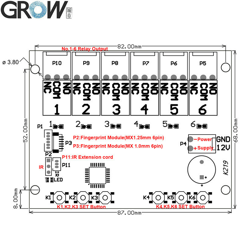 K1-K6 SET बटन No.1-6 रिले के अनुरूप है1. सेट बटनः